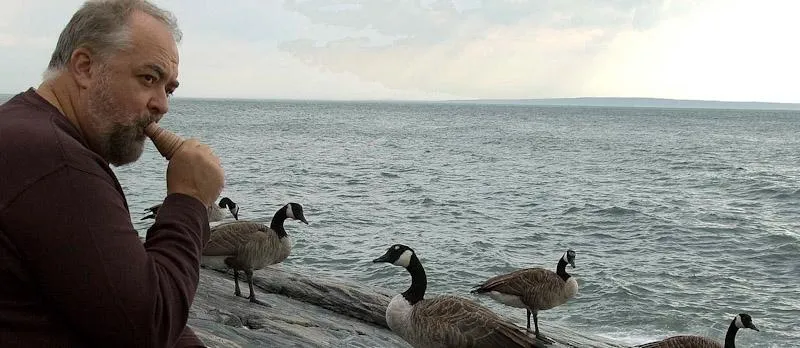 Yves talking to the geese