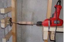 As Ib is a carpenter by profession, he has a natural sense how to work with bamboo in the best way. Just after the final splitting he uses the mounted knife to make the 60 deg. planes by pressing the sides of the splits against the edge of the knife in the 60 deg. angle.