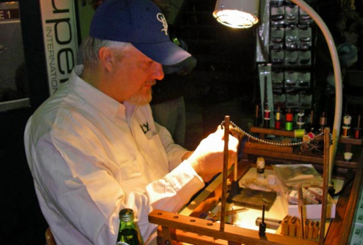 Alan started tying flies shortly after his 8th birthday, in fact the day after his Dad came home with his first pair of bifocals. Alan's Dad set-up his tying vise after dinner that night, and taught Alan to tye. His first flies were brown hackle peacock wet flies and black/grizzly woolyworms. The first woolyworm that he tyed is still in his fly fishing gear. Alan quickly became the fly tyer for his Dad, Dad's friends, and his buddies, and has been tying now for over 43 years. His father's fly pattern preferences leaned toward the classic Michigan and Eastern patterns including the traditional Rangeley patterns that his Dad called 'Eastern Streamers'. He started professionally tying at 12 years old, and continues to this day. Fly patterns that he tyes run the gamut from North Country soft hackles, Western patterns, steelhead flies, bassbugs, Catskill and Eastern dry flies to the Rangeley style streamers. He has developed a series of steelhead spey style flies, Western Canadian Bucktails, and his own Rangeley style streamers for the Alberta Rocky Mountain Lakes. Currently Alan resides in Saskatoon, Saskatchewan with his wonderful wife, family, and his Nova Scotia Duck Tolling Retrievers.