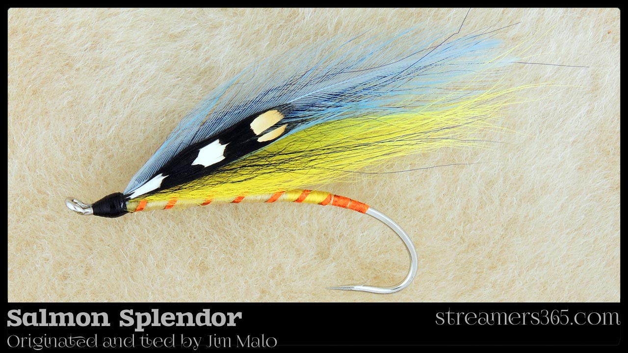 Salmon Splendor - Jim Malo Tied by: Jim Malo Originated by: Jim Malo Salmon Splendor Fly Pattern Recipe Hook: Alec Jackson Spey Hook 2055 Silver #1.5...