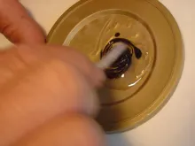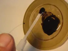 4. Melt the nylon. Mix the epoxy with a drop or two of hobby paint or varnish. Apply to the eyes and let them dry on a fly dryer using painters tape or even better a rubber band to hold the eyes.